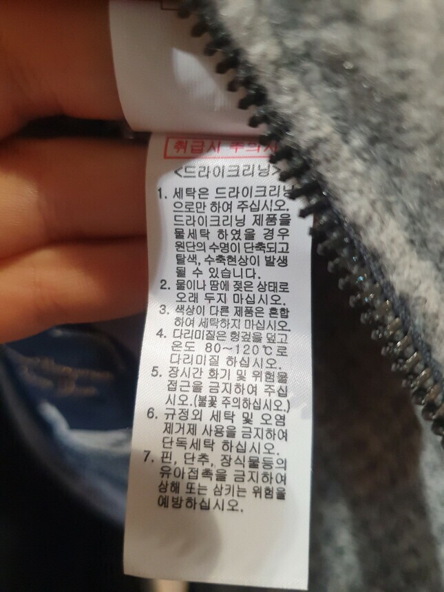 | 6. 세탁방법 및 취급시 주의사항 | 드라이크리닝 |