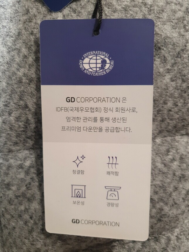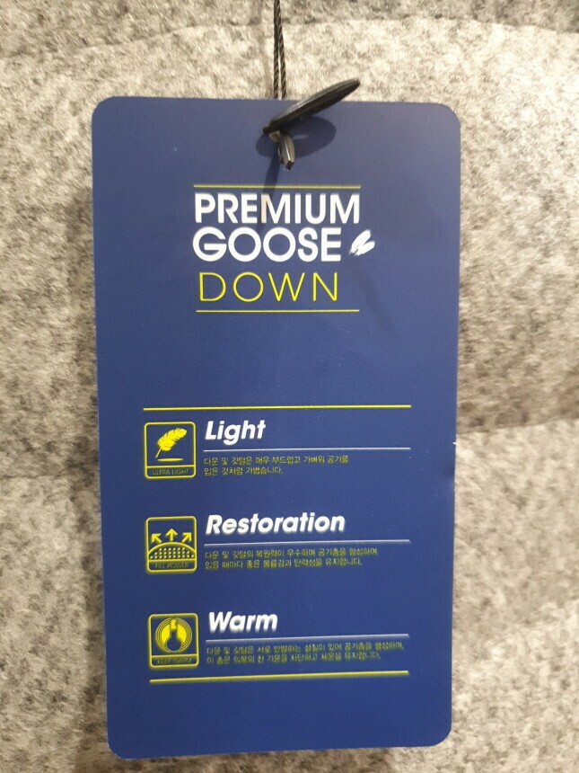 충전재 :솜털(거위) 80% ,깃털(거위) 20%