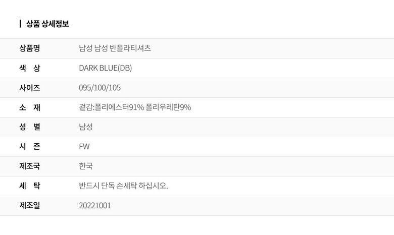 1. 제품 소재 (섬유의 조성 또는 혼용률을 백분율로 표시, 기능성인 경우 성적서 또는 허가서) 겉감:폴리에스터91% 폴리우레탄9%