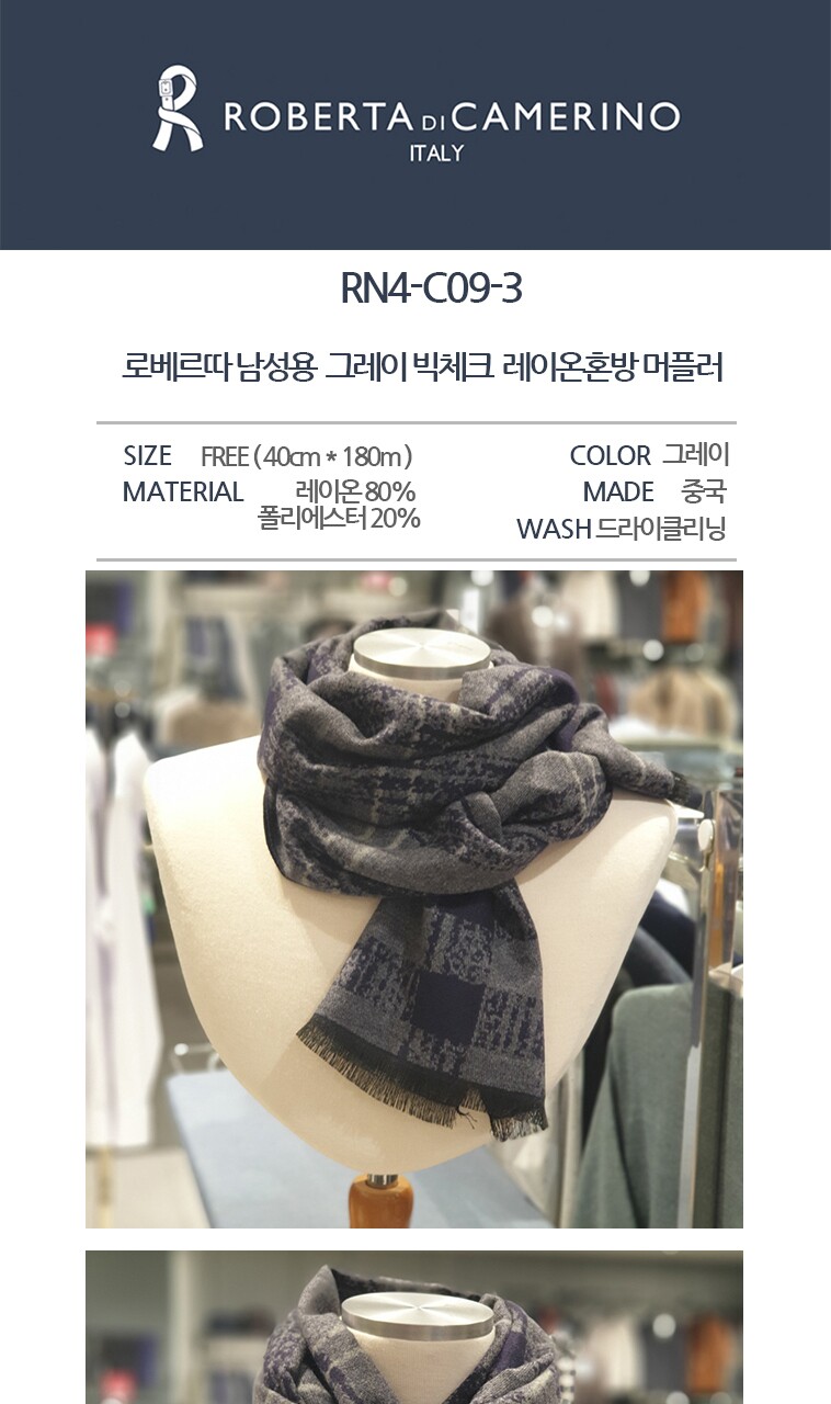 로베르따 남성용 그레이빅체크 레이온혼방 머플러 RN4-C09-3