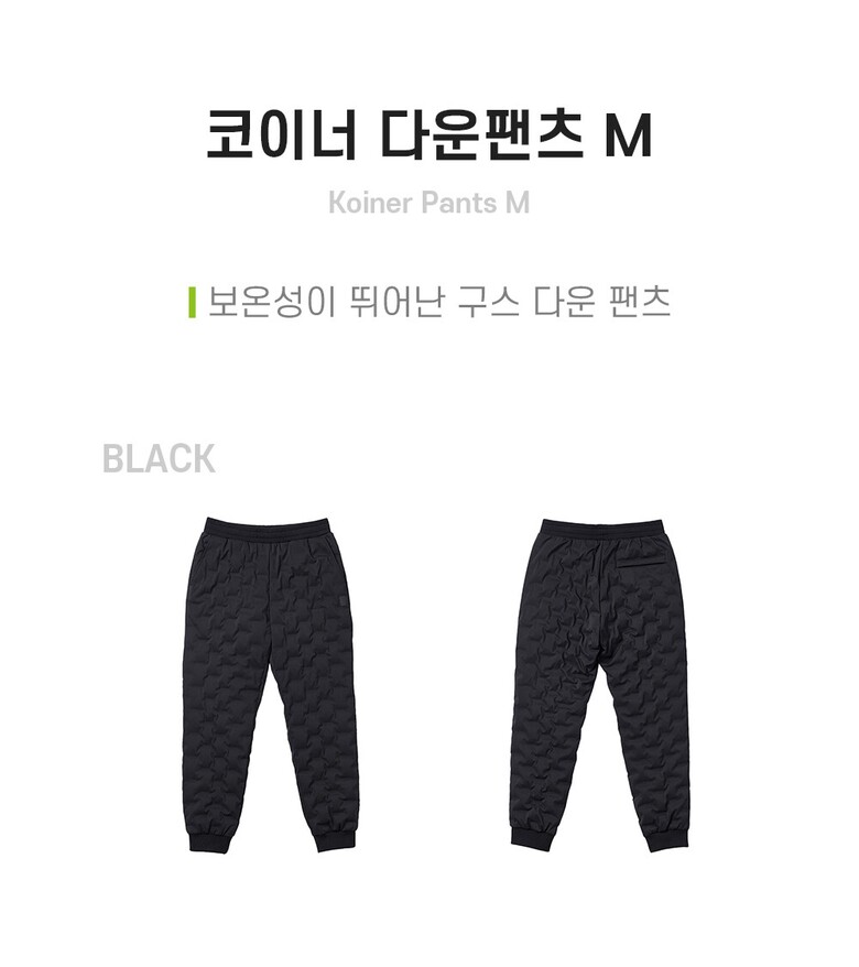 직조로 두겹으로 짜여진 소재를 사용한 다운 팬츠