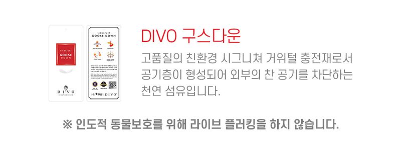 구스다운(80:20)을 충전재로 사용하였고 |*| 퀼팅선이 없이 다운방을 만드는 구조로 보온성이 뛰어남