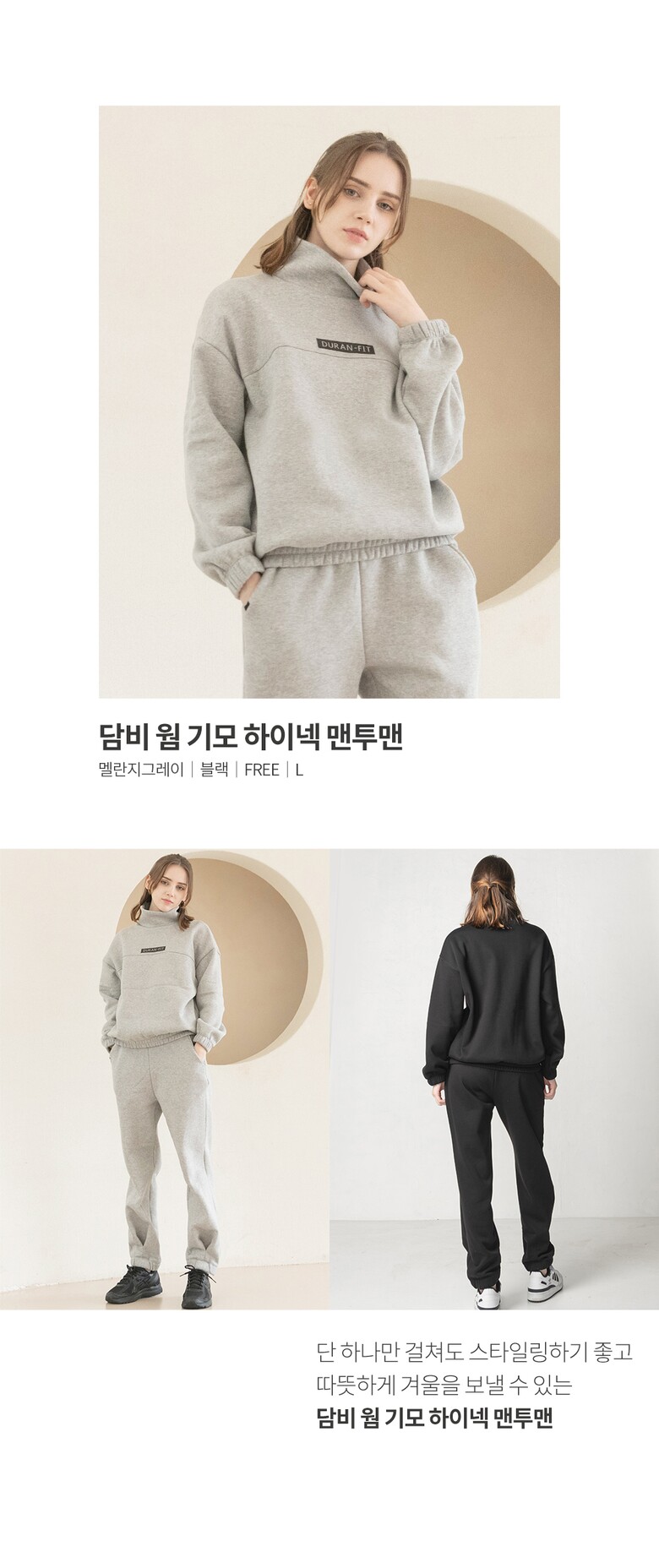 뒤란 담비 웜 기모 하이넥 맨투맨 DTF3W-4132 2colors