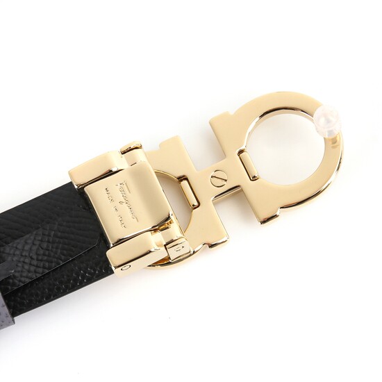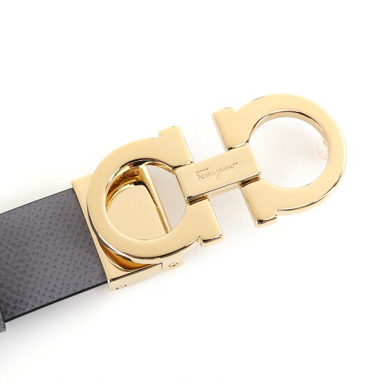 - 페라가모의 아이코닉한 더블 간치니 오나먼트가 돋보이는 여성용 벨트