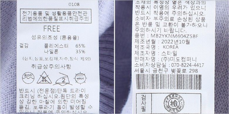 | 6. 세탁방법 및 취급시 주의사항 | 상세페이지 참조 |