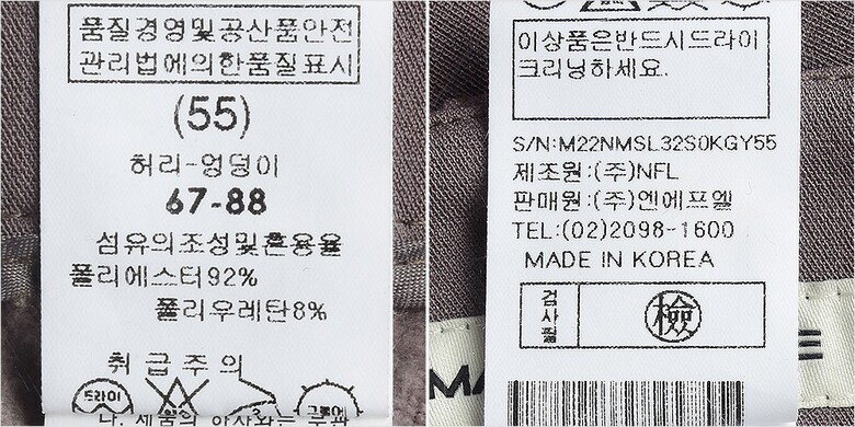 | 1. 제품 소재 (섬유의 조성 또는 혼용률을 백분율로 표시, 기능성인 경우 성적서 또는 허가서) | 겉감:폴리에스터92% 폴리우레탄8% |
