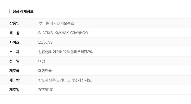 | 6. 세탁방법 및 취급시 주의사항 | 상세페이지 참조 |