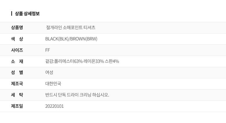 | 6. 세탁방법 및 취급시 주의사항 | 상세페이지 참조 |