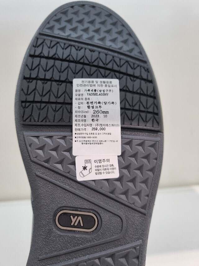 1. 제품 소재 (운동화인 경우에는 겉감, 안감을 구분하여 표시) | 소가죽 |