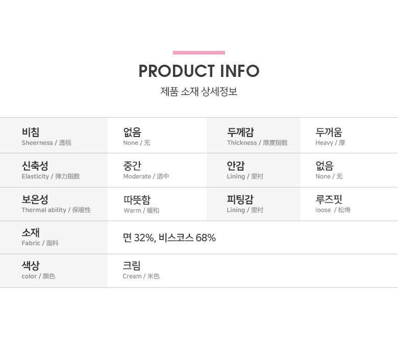 | 1. 제품 소재 (섬유의 조성 또는 혼용률을 백분율로 표시, 기능성인 경우 성적서 또는 허가서) | 별도표시 |