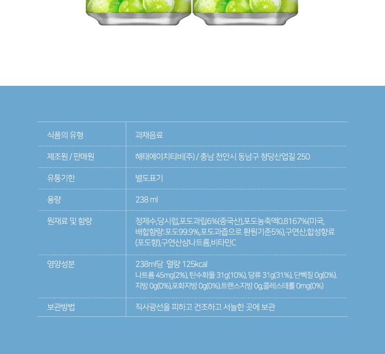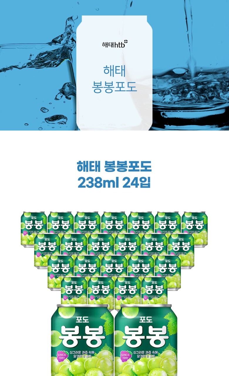 상세페이지의 내용이 일치하는지 확인 후 구매 부탁드립니다. 해당 상품은[ 해태 봉봉포도 238ml 24입 ] 구성의 상품입니다.