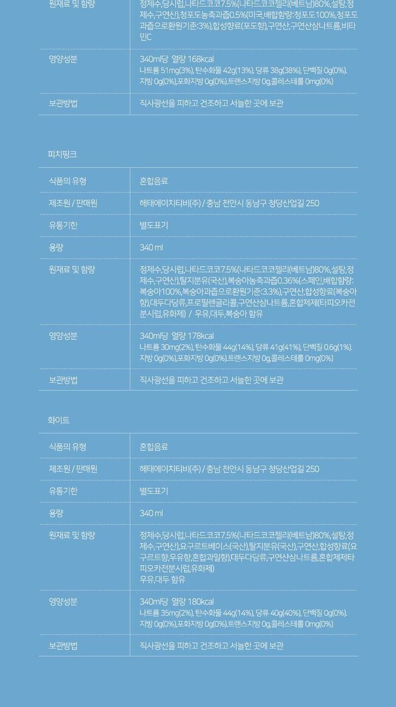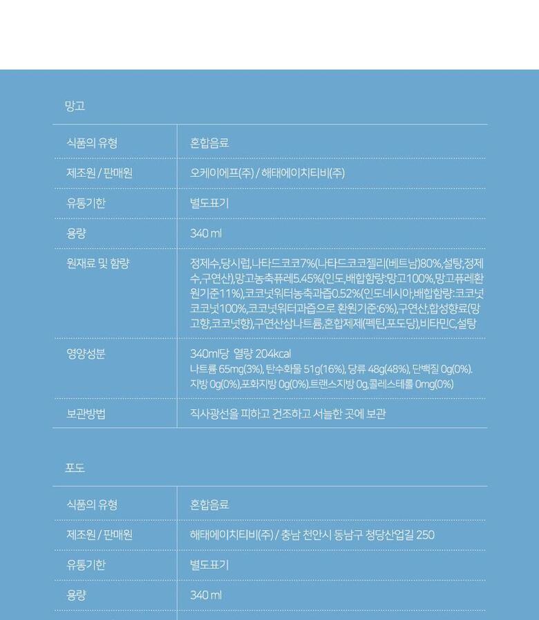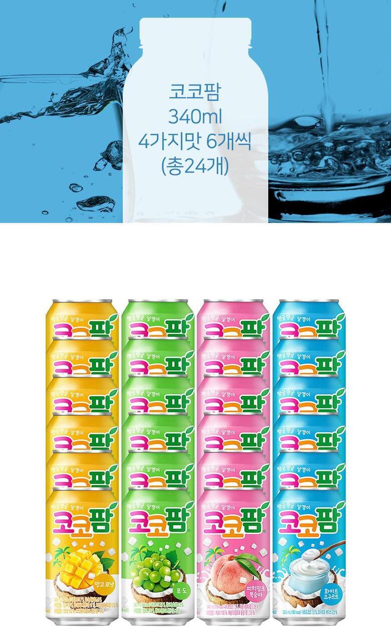 상세페이지의 내용이 일치하는지 확인 후 구매 부탁드립니다. 해당 상품은[ 해태 코코팜 340ml 4가지맛 혼합 24입 ] 구성의 상품입니다.