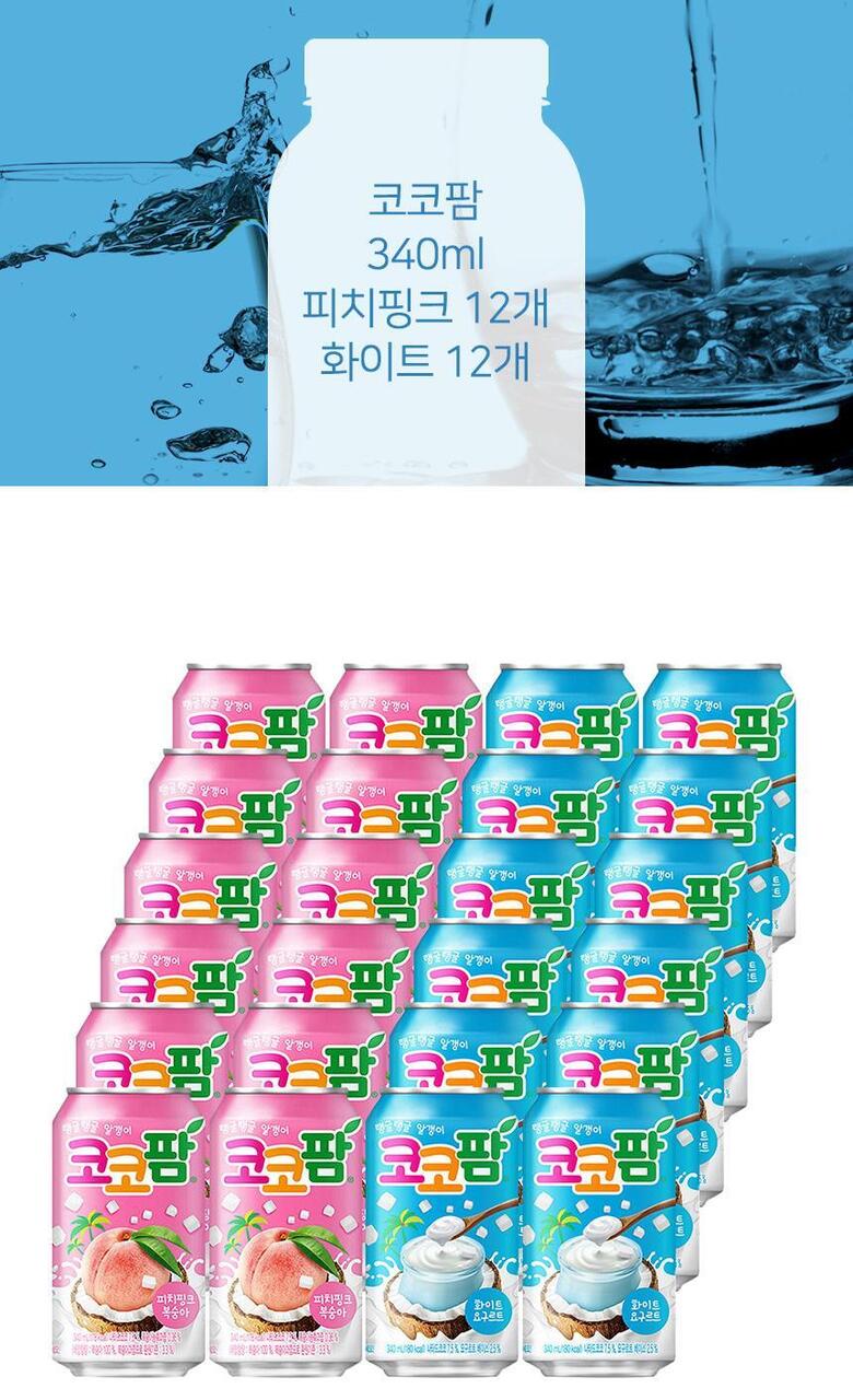 상세페이지의 내용이 일치하는지 확인 후 구매 부탁드립니다. 해당 상품은[ 해태 코코팜 340ml 피치핑크 + 화이트 혼합 24개 ] 구성의 상품입니다.