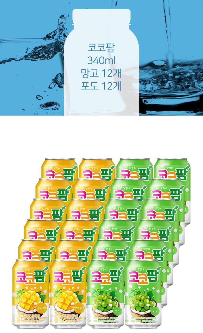 상세페이지의 내용이 일치하는지 확인 후 구매 부탁드립니다. 해당 상품은[ 해태 코코팜 340ml 망고 + 포도 혼합 24개 ] 구성의 상품입니다.