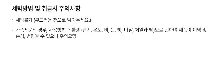 6. 취급시 주의사항 열이나 직사광선, 습기에 주의하고, 부드러운 소재를 사용하여 닦아주시기 바랍니다.