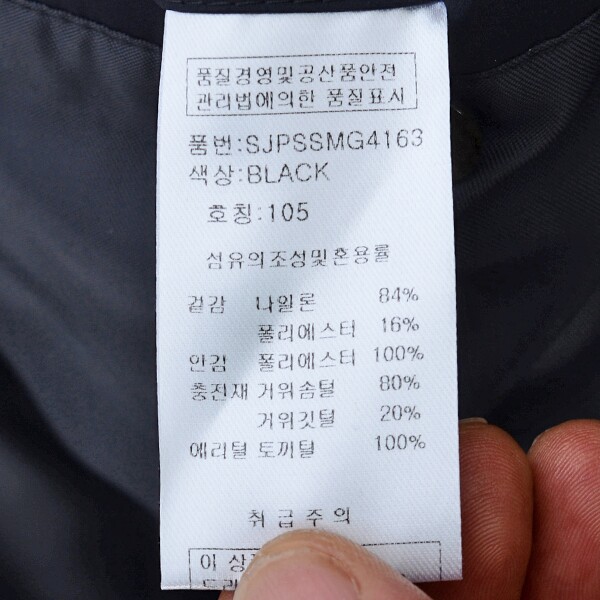 | 1. 제품 소재 (섬유의 조성 또는 혼용률을 백분율로 표시, 기능성인 경우 성적서 또는 허가서) | 거위솜털80%거위깃털20% 에리털-토끼털100% |