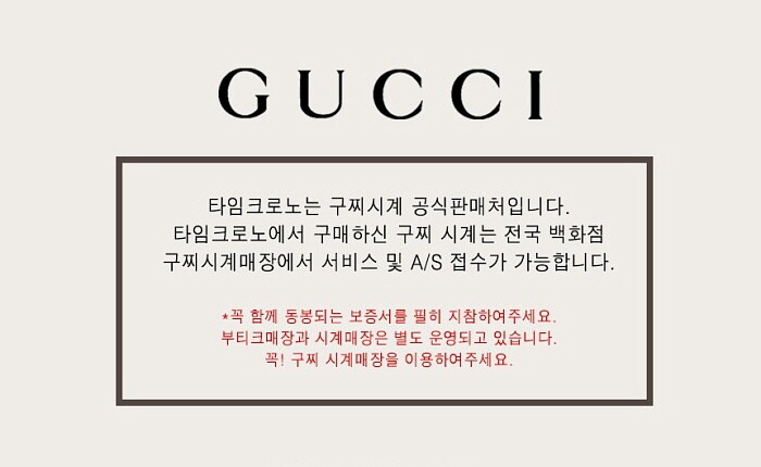 | 7. 주요 사양 | Y(전국 백화점 내 구찌 시계 매장을 통하여 AS 접수 가능) |