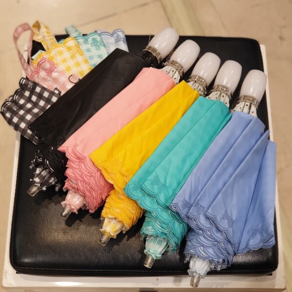 상세설명 : 파스텔톤의 체크 패턴에 끝단을 스캘럽과 리본 자수로?귀여운 분위기를 준?질스튜어트 양산입니다