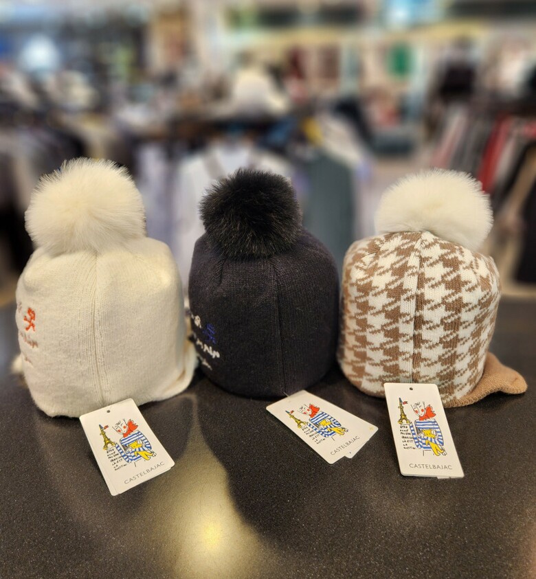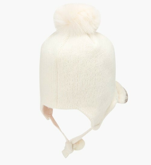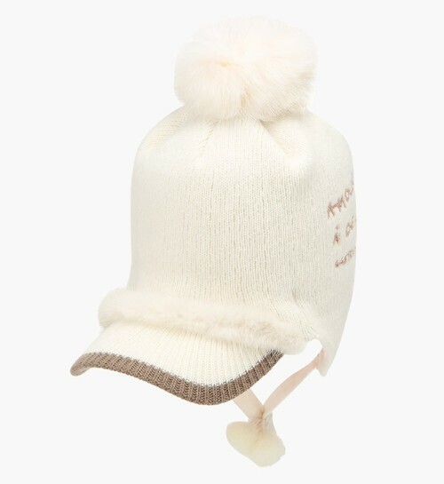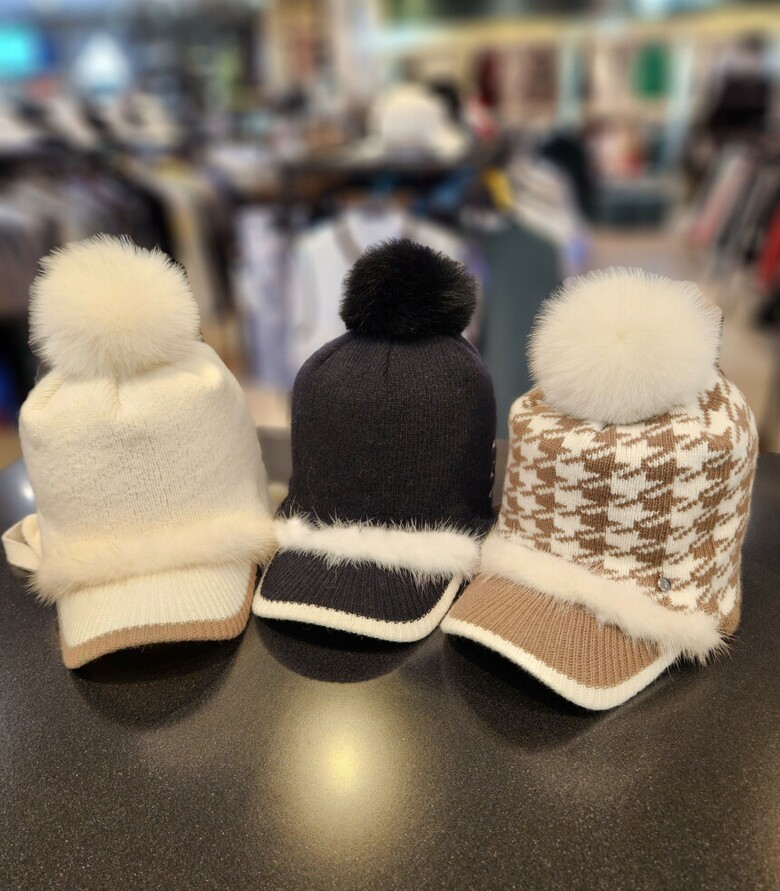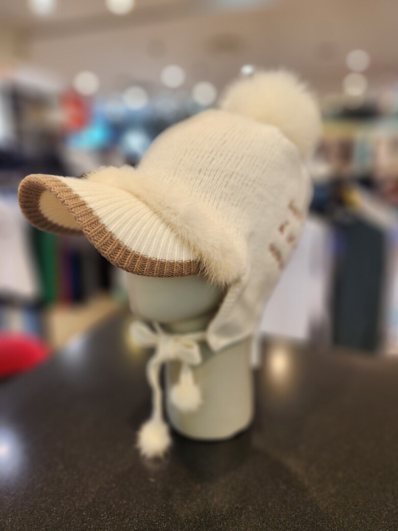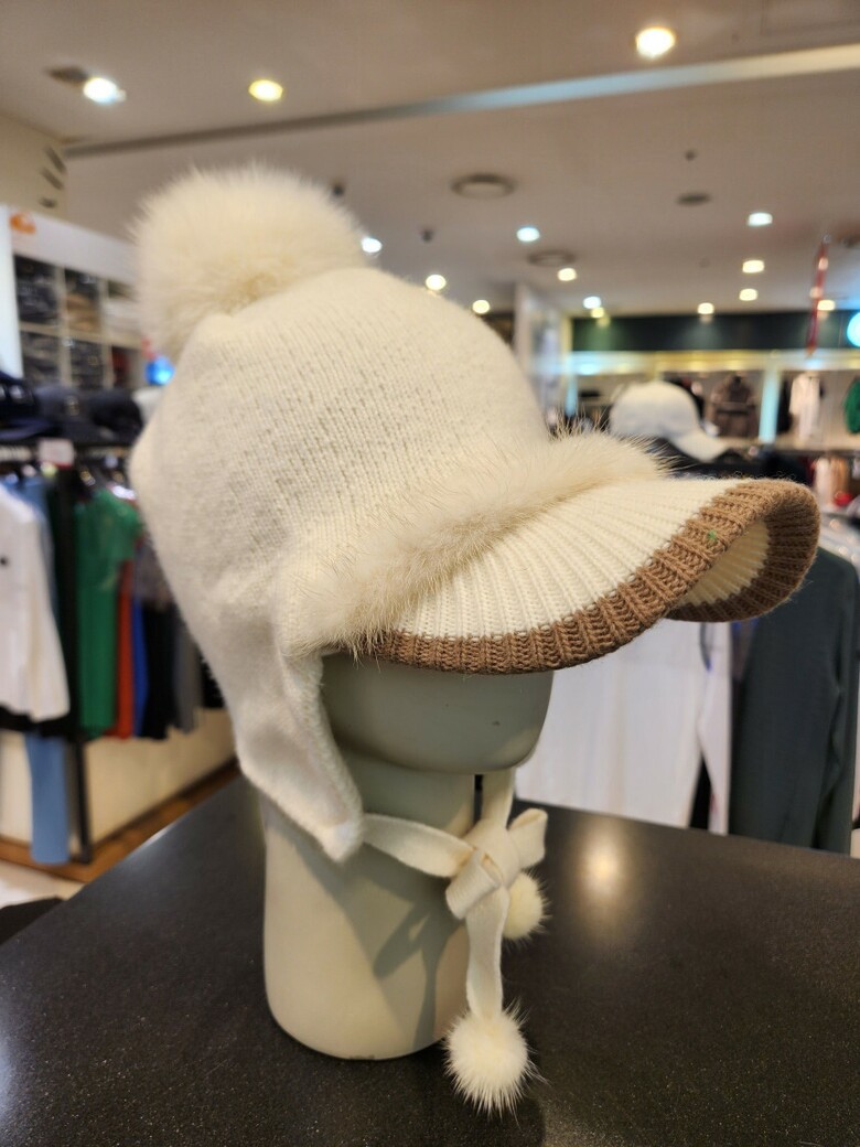 여성 퍼 방울 니트 귀달이 모자 BGBWGC707 WH
