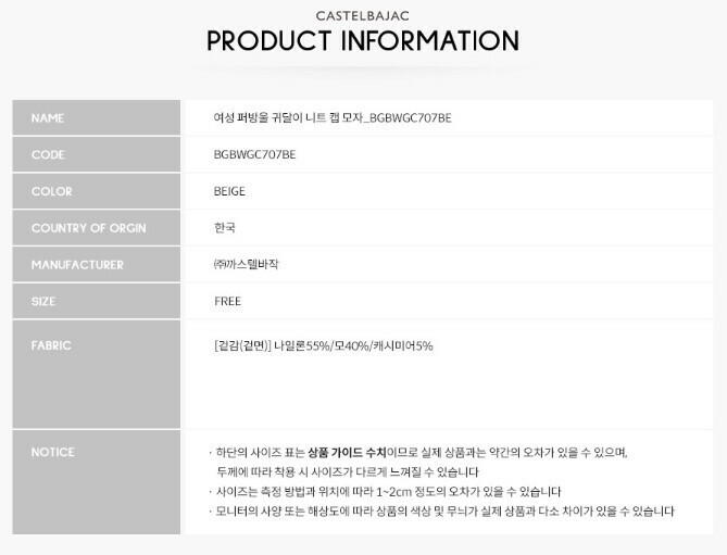 | 1. 품명 및 모델명 | 여성 퍼 방울 니트 귀달이 모자 |