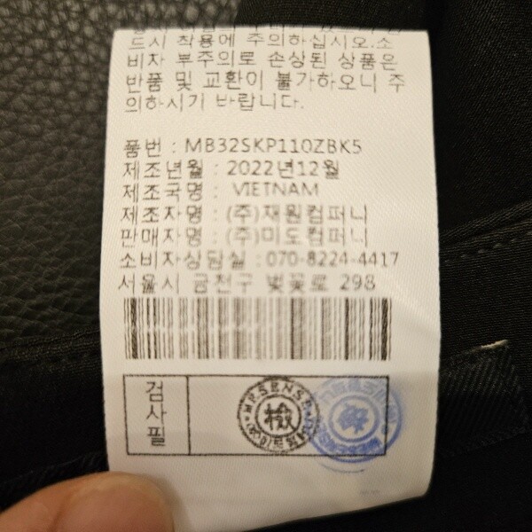 세탁방법 및 취급시 주의사항 : 케어라벨참조