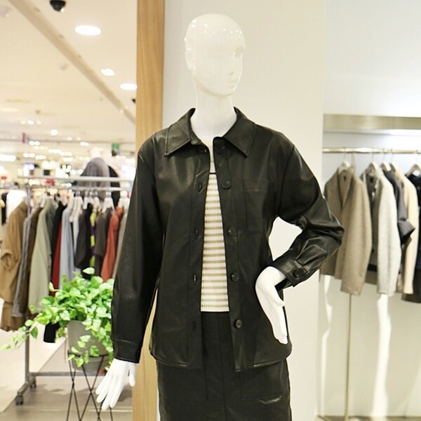 페이크레더 소재감 셔츠스타일 자켓입니다.