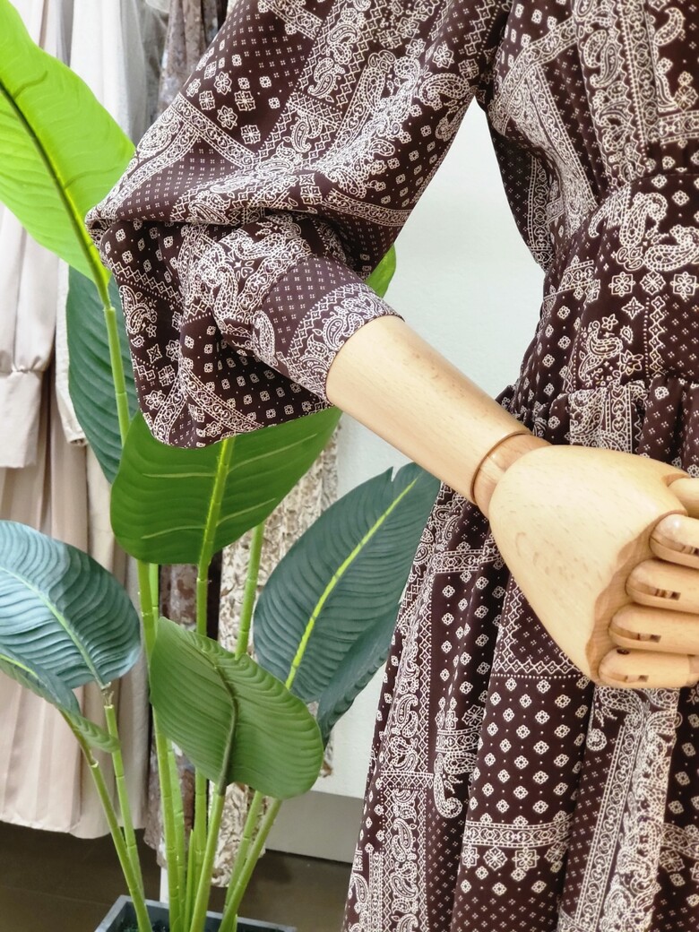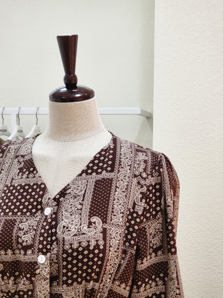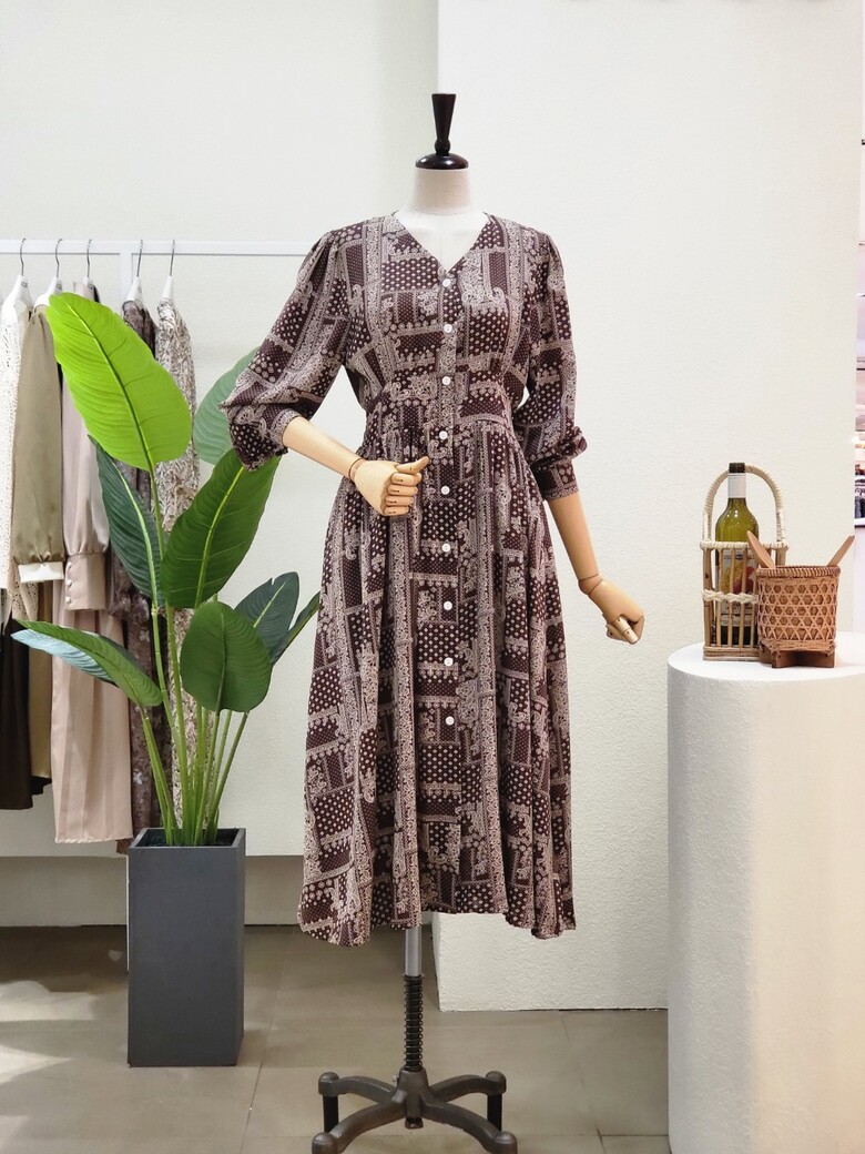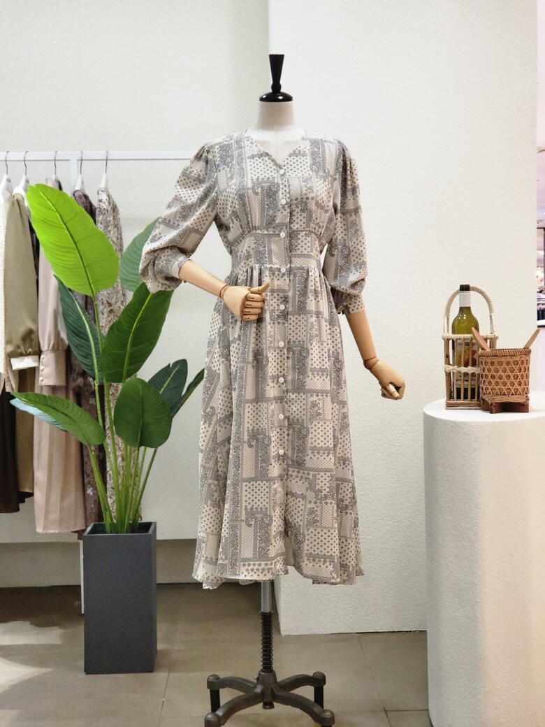 FF2I9OP5087_브이넥 셔츠형 패턴 원피스