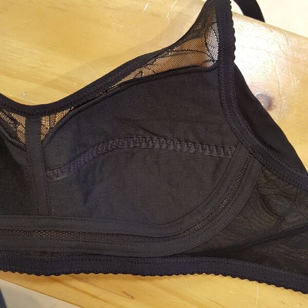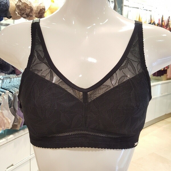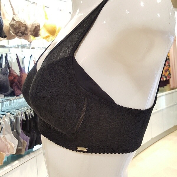 블랙컬러의 가벼운 착용감 밀착력좋고 부유방 커버에 좋은 메쉬 노와이어브라 입니다.