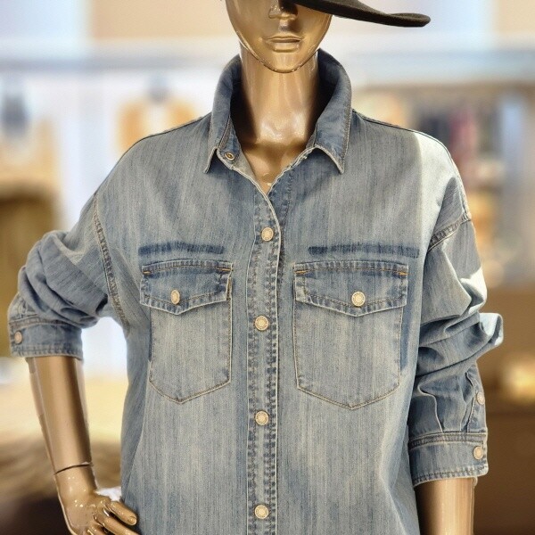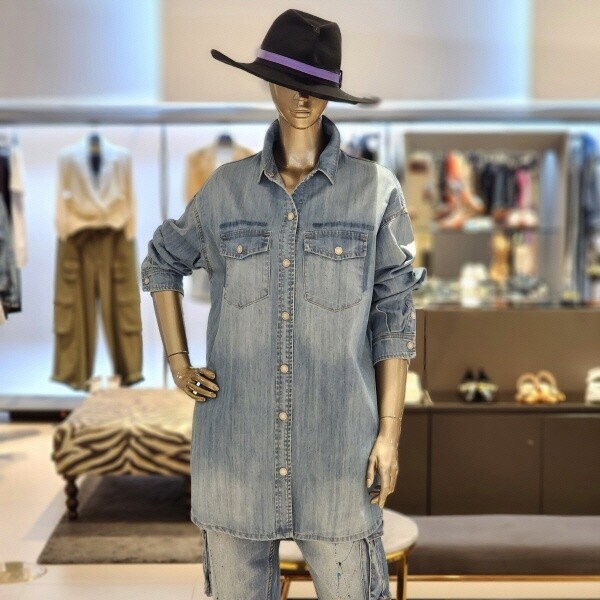 ACW5NSDB0450_스냅단추 롱오버핏데님셔츠