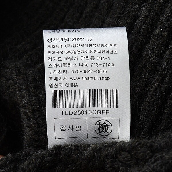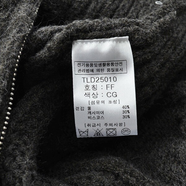 | 1. 제품 소재 (섬유의 조성 또는 혼용률을 백분율로 표시, 기능성인 경우 성적서 또는 허가서) | 울40%, 캐시미어 30%, 비스코스30% |