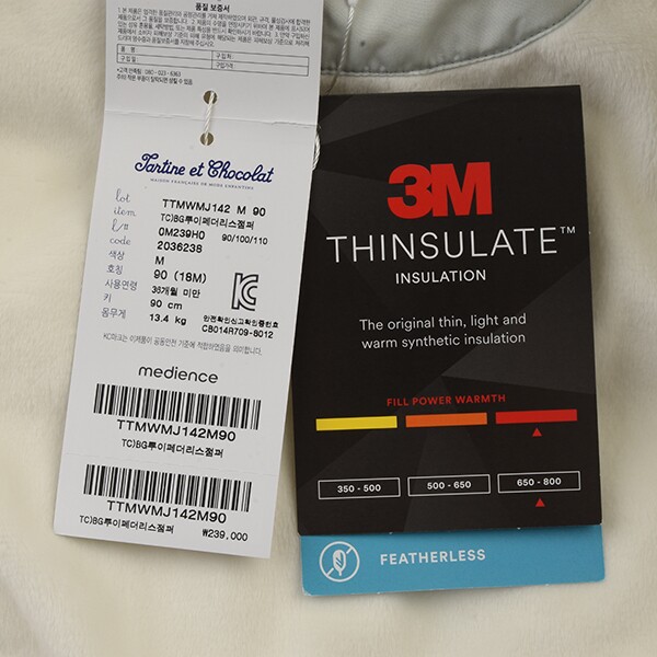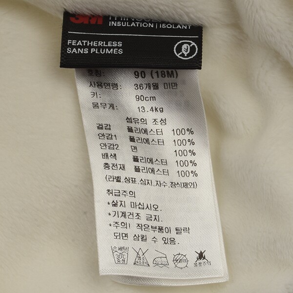 | 5. 제조국 | 겉감 폴리에스터 100안감 1 폴리에스터 100안감 2 면 100배색 폴리에스터 100 충전재 폴리에스터 100 |