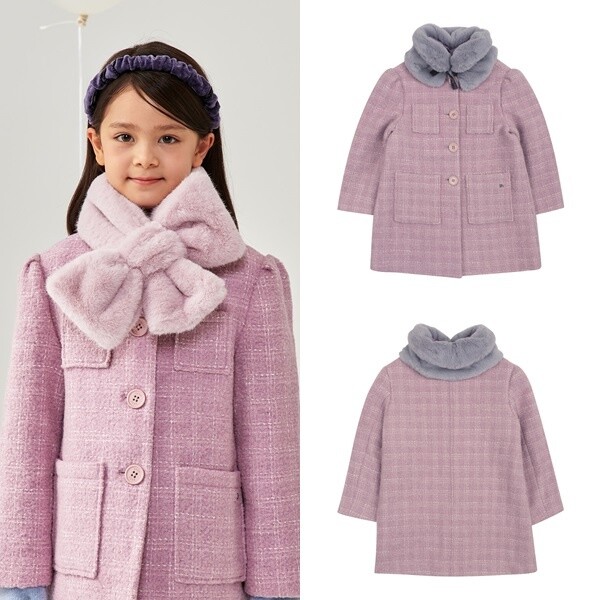 BX62CT03VI_여아 바이올렛 트위드 퍼카라 코트