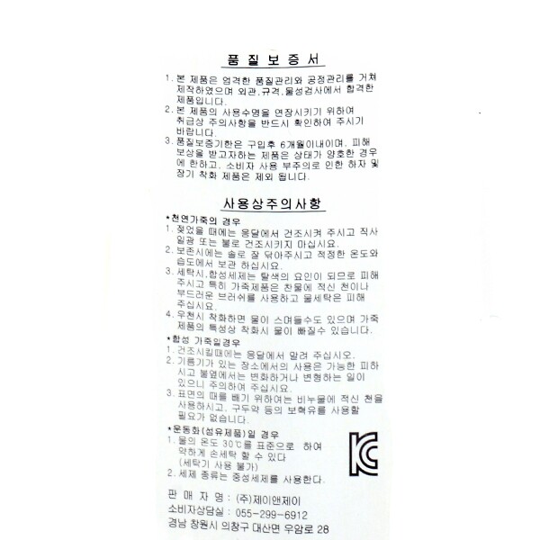 6. 취급시 주의사항 1.젖었을 때에는 통풍이 잘되는 응달에서 건조시켜 주십시요 2.오염시에는 비눗물에 적신 천이나 부드러운 브러쉬를 사용하십시요