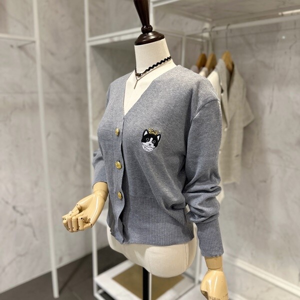[대구백화점SG] F3CCA012A_고양이 자수 브이넥 가디건
