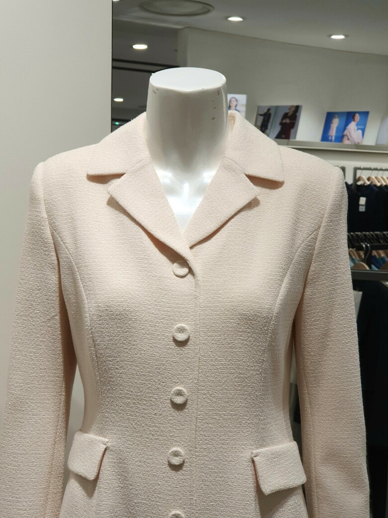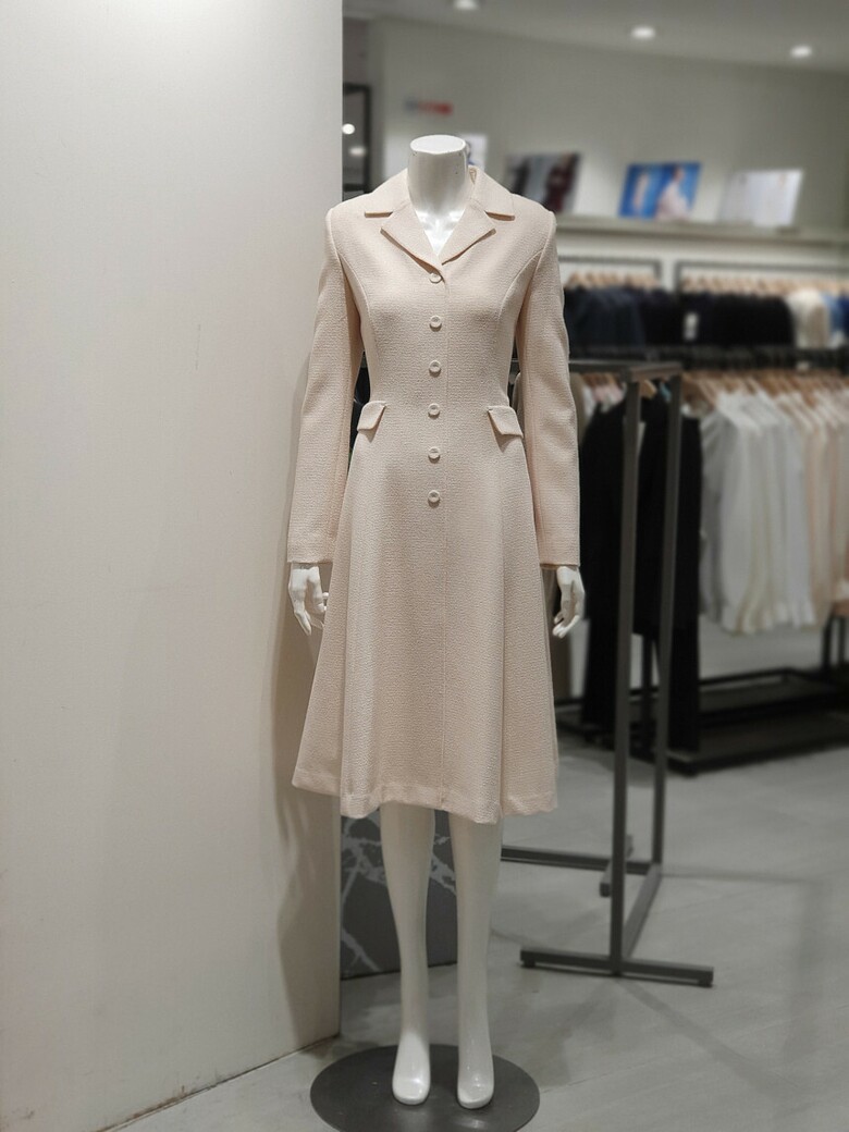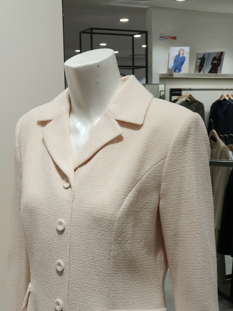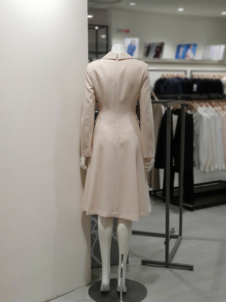 허리선을 잡아주고 A 라인 스커트로 페미닌한 실루엣이 연출되며