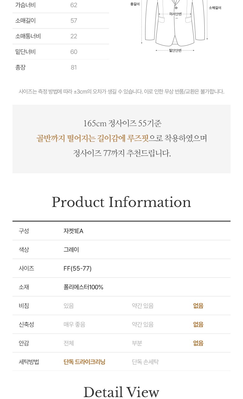 1. 제품 소재 (섬유의 조성 또는 혼용률을 백분율로 표시, 기능성인 경우 성적서 또는 허가서) | 폴리에스터100% |