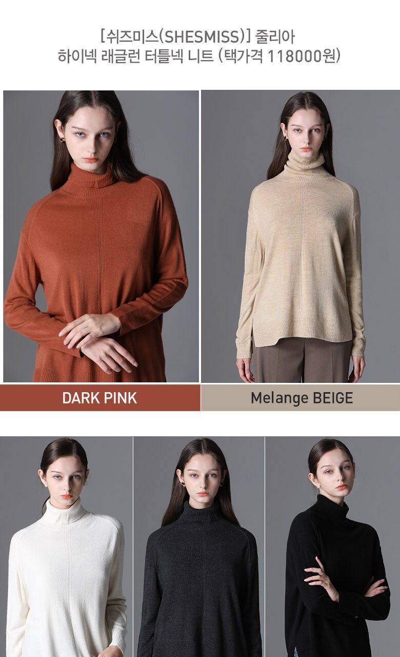 [쉬즈미스] 줄리아 하이넥 래글런 터틀넥 니트