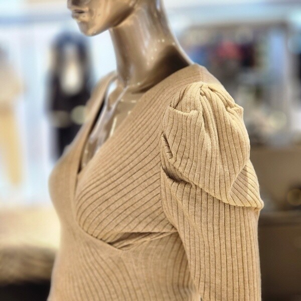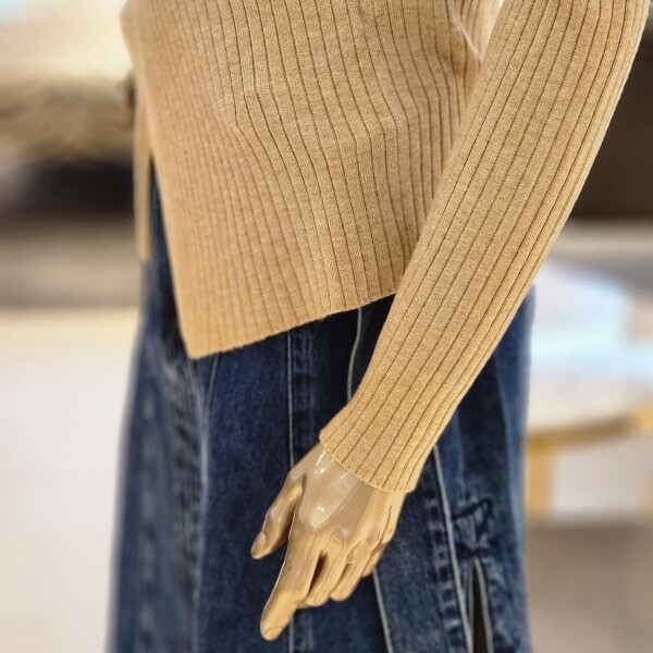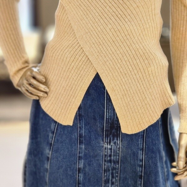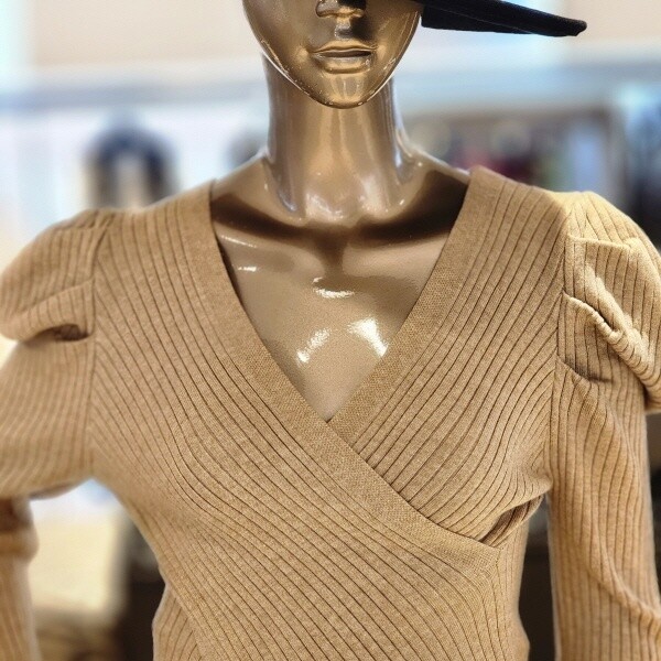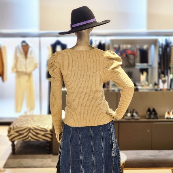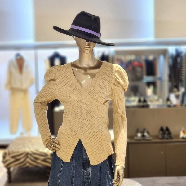 BDW5PNKG8150_볼륨소매 앞트임니트티셔츠