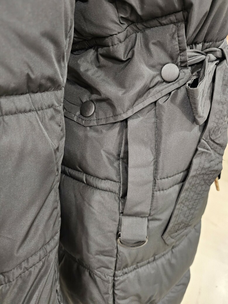 벨티드 배색 롱 패딩