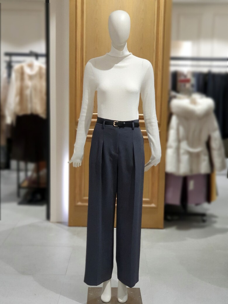 하이웨스트 디자인에 원 턱 디테일로 내추럴한 실루엣을 연출한