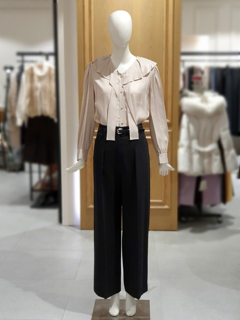 여유로운 와이드 핏으로 페미닌한 코디 연출하기 좋은 아이템입니다.