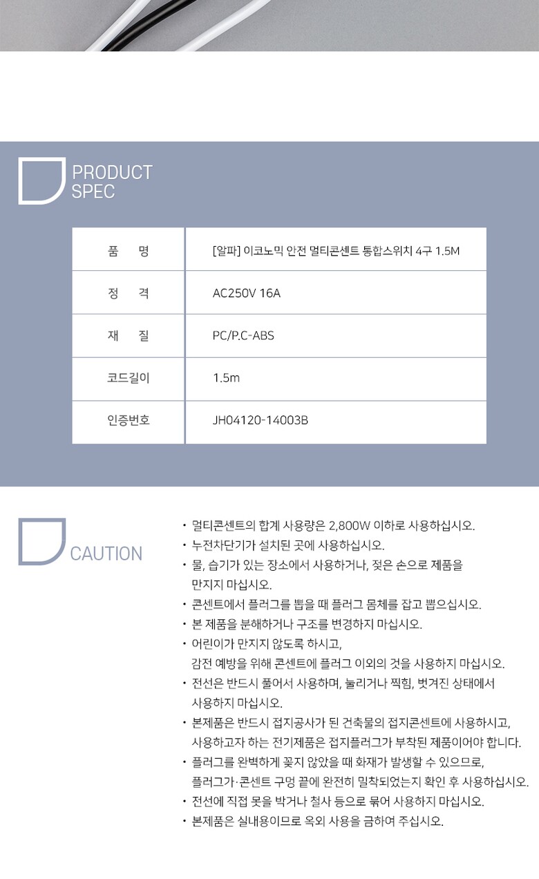 #알파 #이코노믹 #안전 #멀티콘센트 #통합스위치 #4구 #1.5M #알파 #alpha
