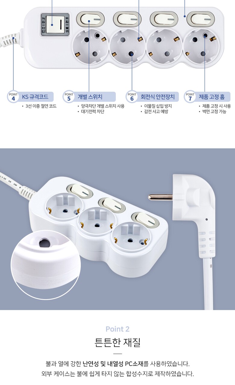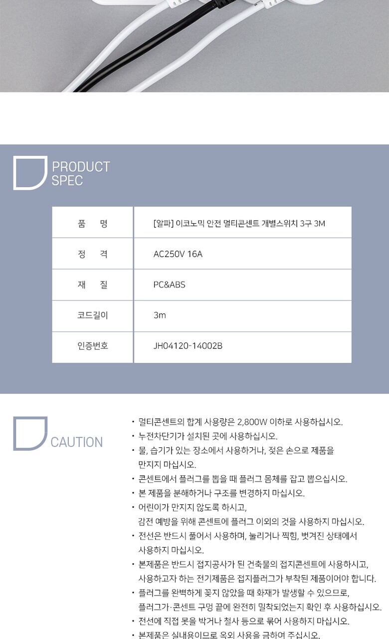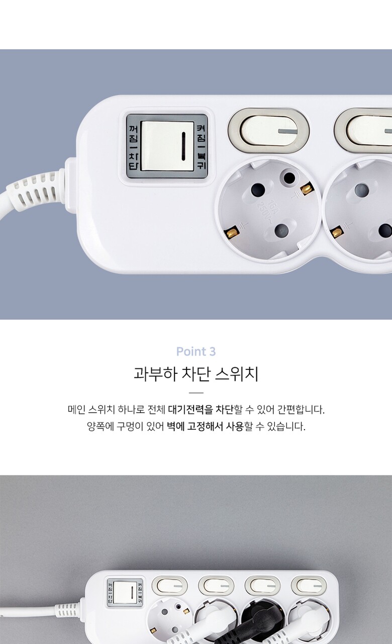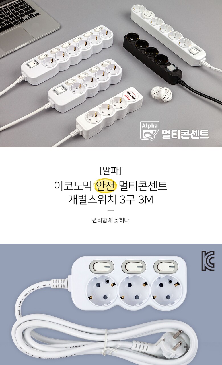 [알파] 이코노믹 안전 멀티탭 개별스위치 3구 3M