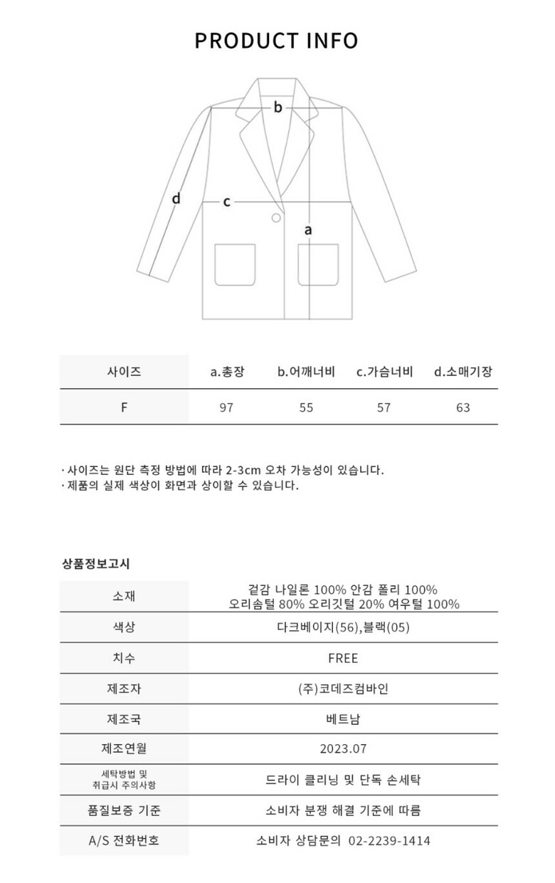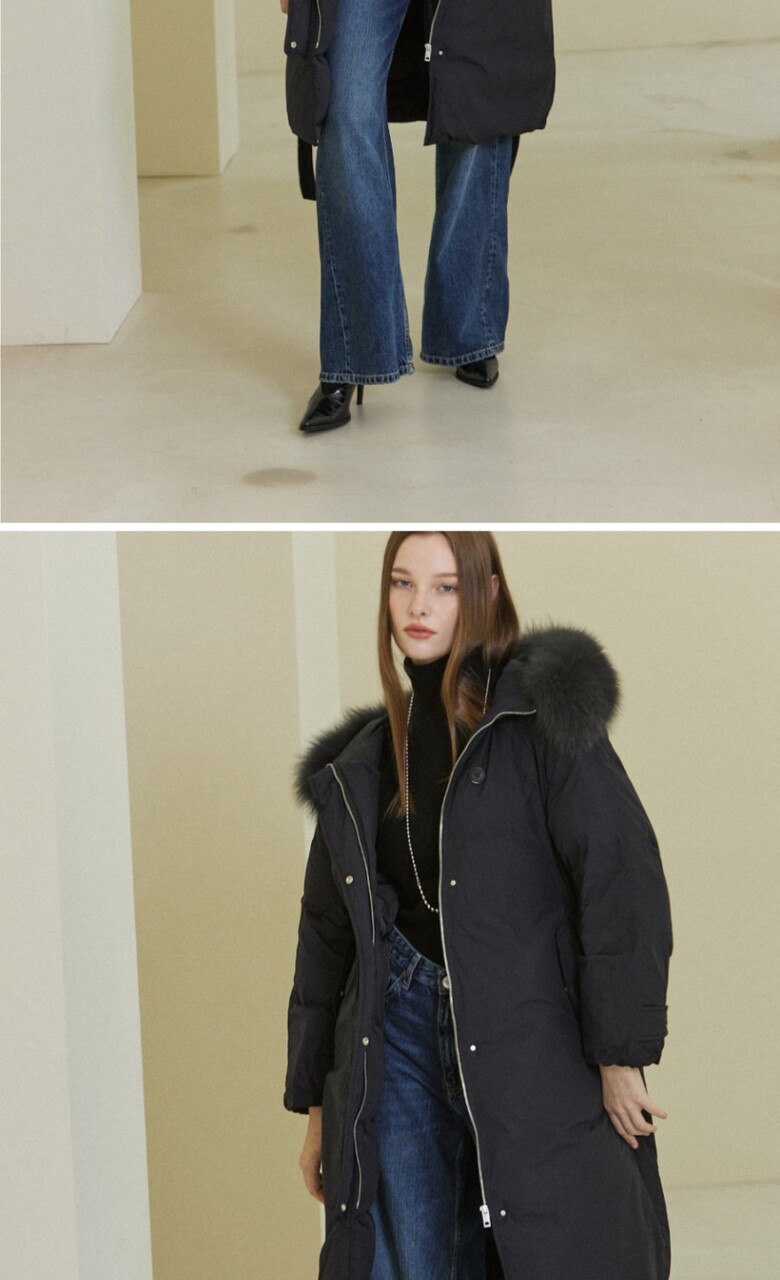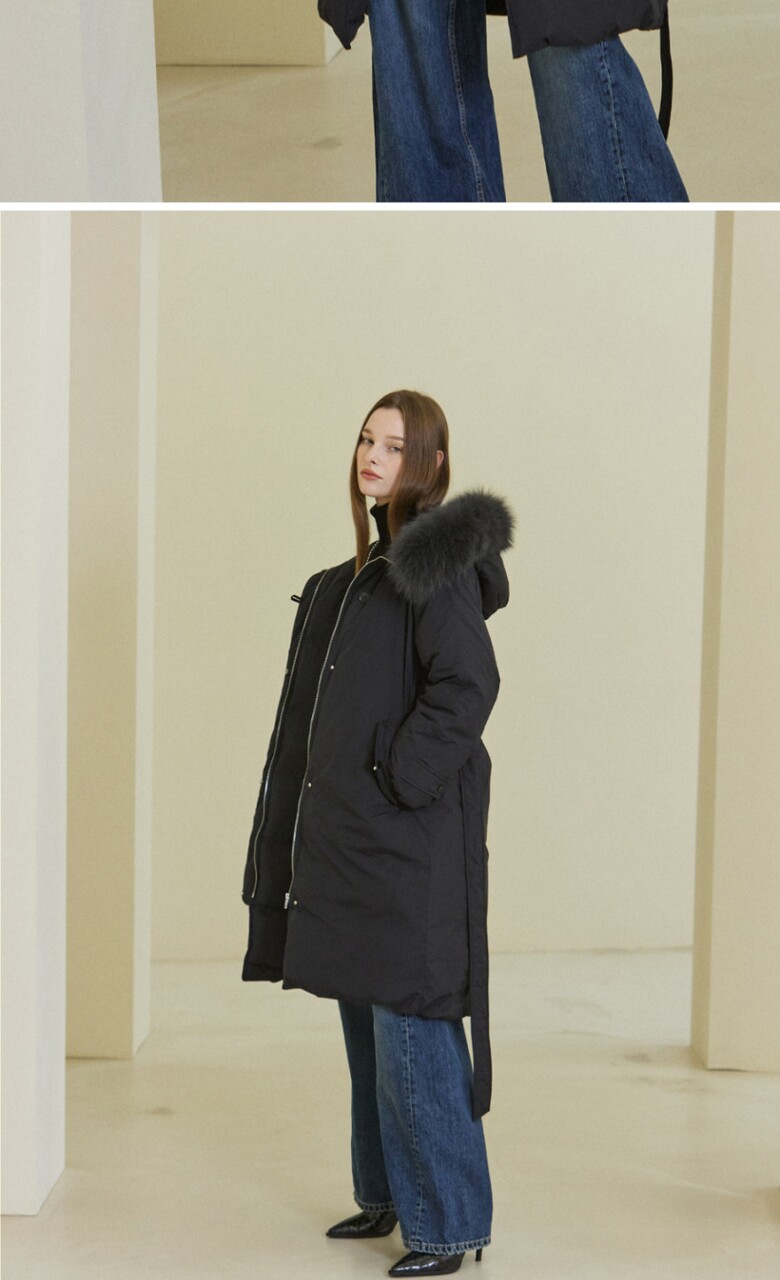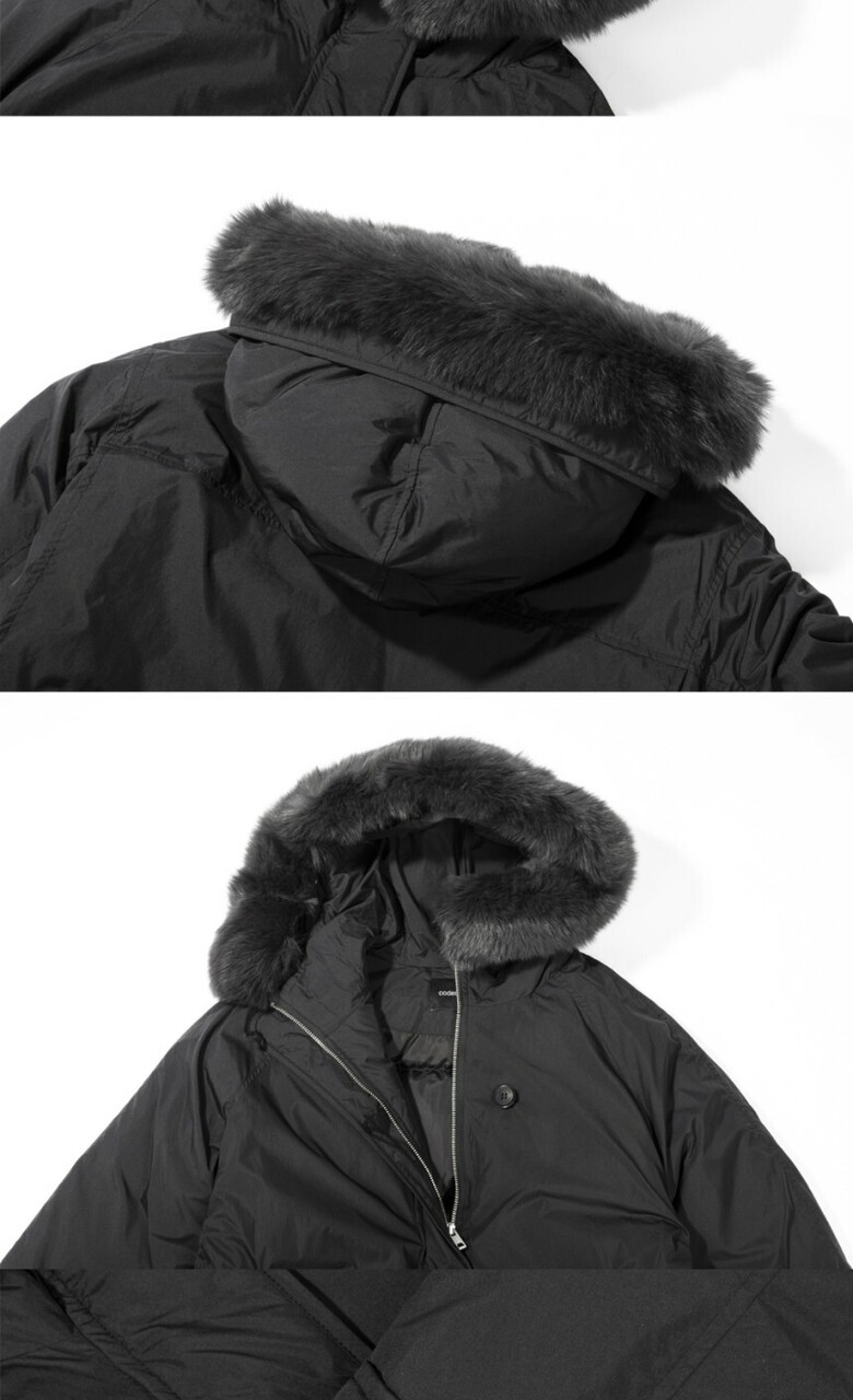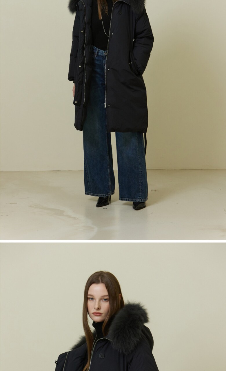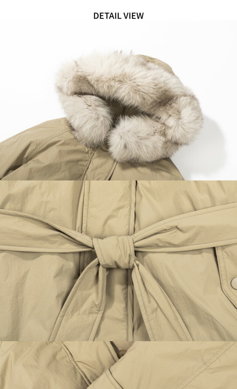 · 겉감 : 나일론100% / 안감:폴리100% / 배색 : 천연모피(폭스) / 충전재 : 오리솜털80%, 오리깃털20%