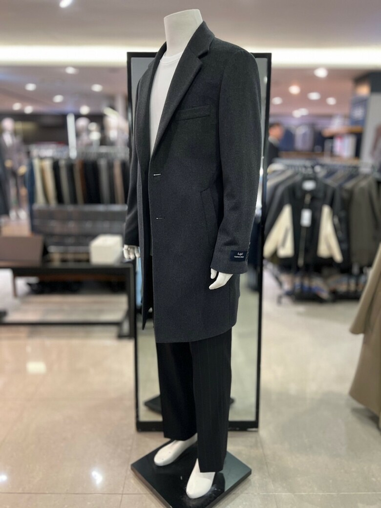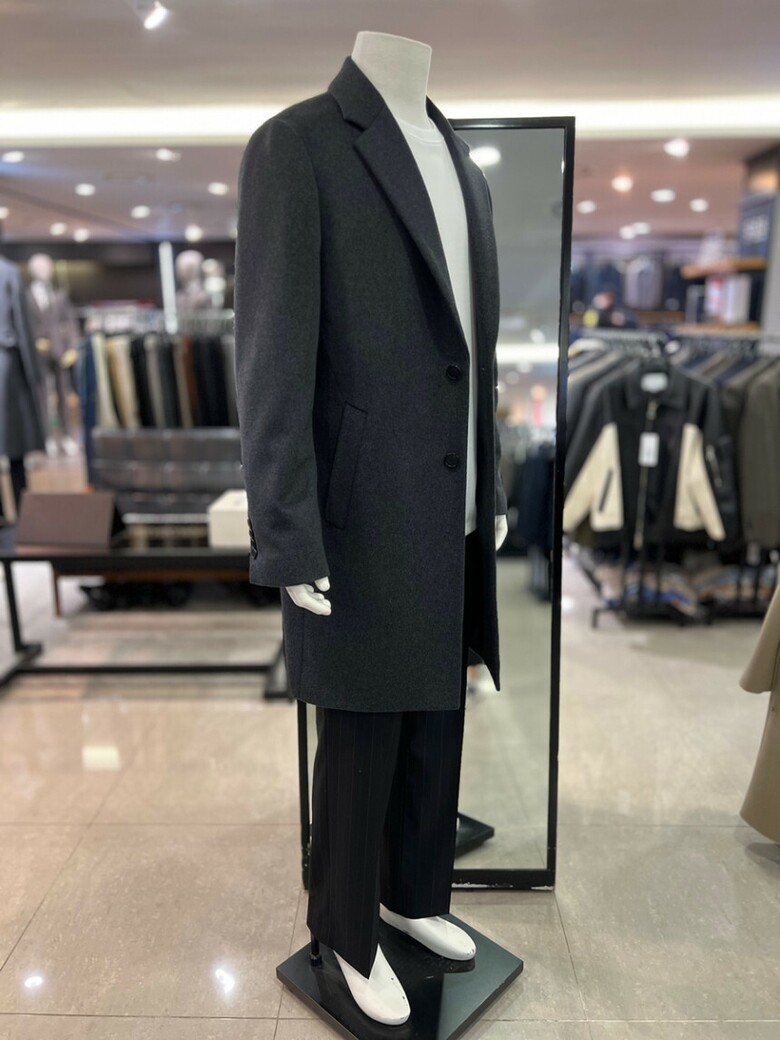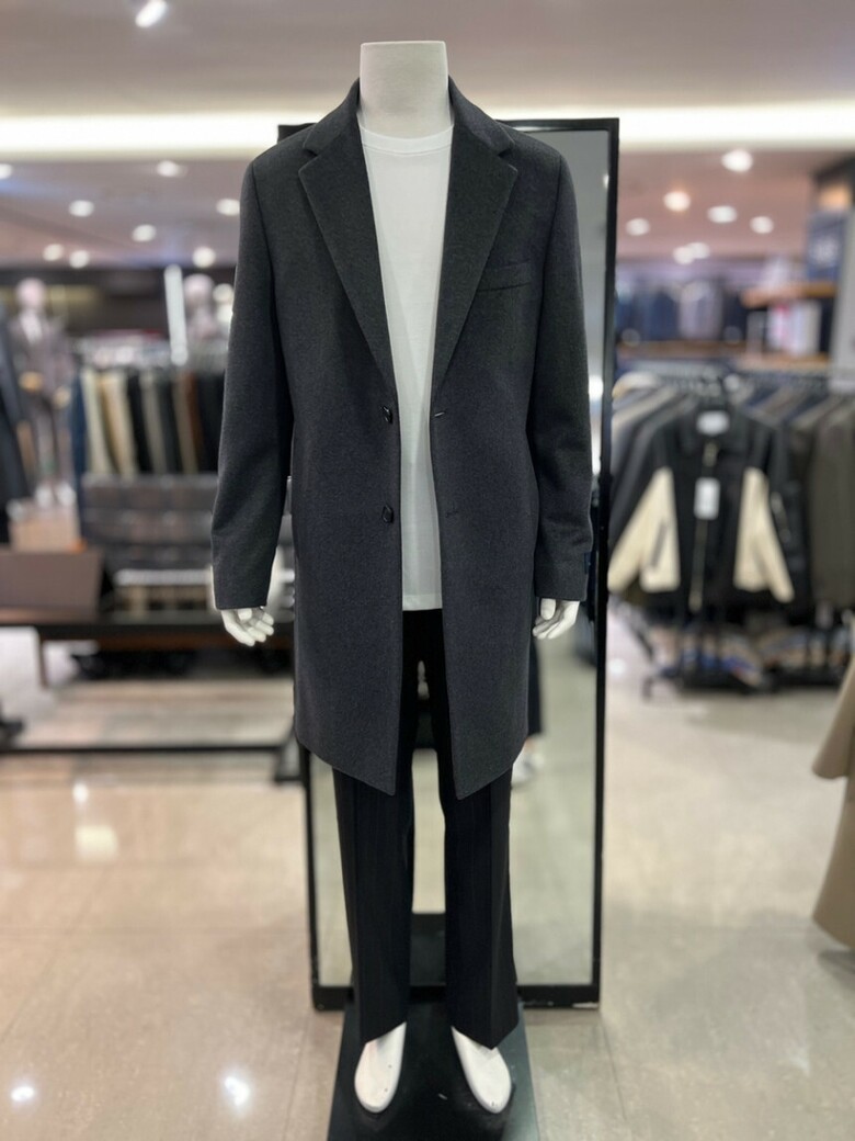 차콜 레귤러핏 캐시미어 블렌드 싱글 체스터 코트