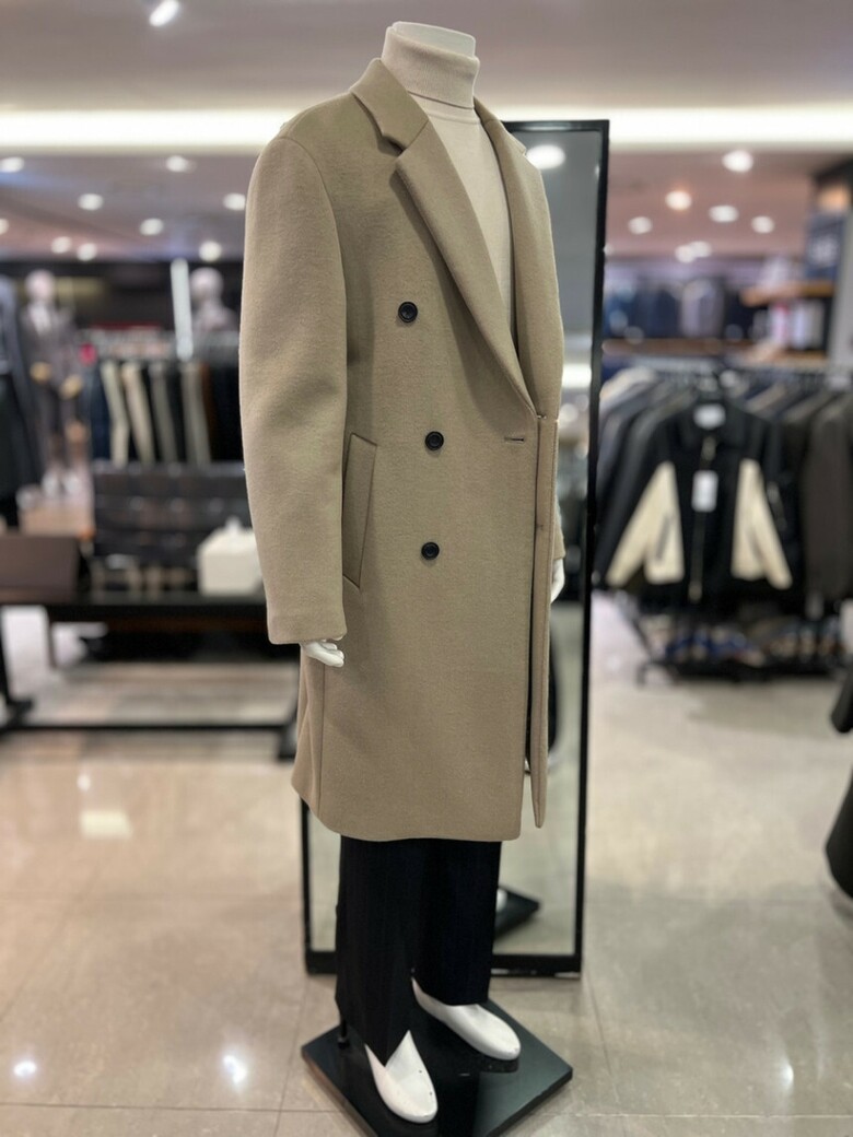 베이지 캐시미어 블렌드 더블 코트