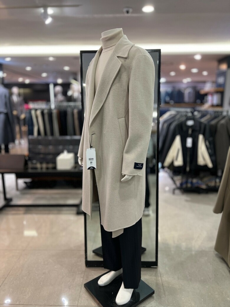 리버클래시 라이트베이지 구스다운 세미오버핏 핸드메이드 로브 코트 LJW21285