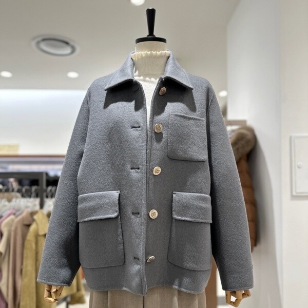 아웃 포켓이 포인트인모직 재킷입니다