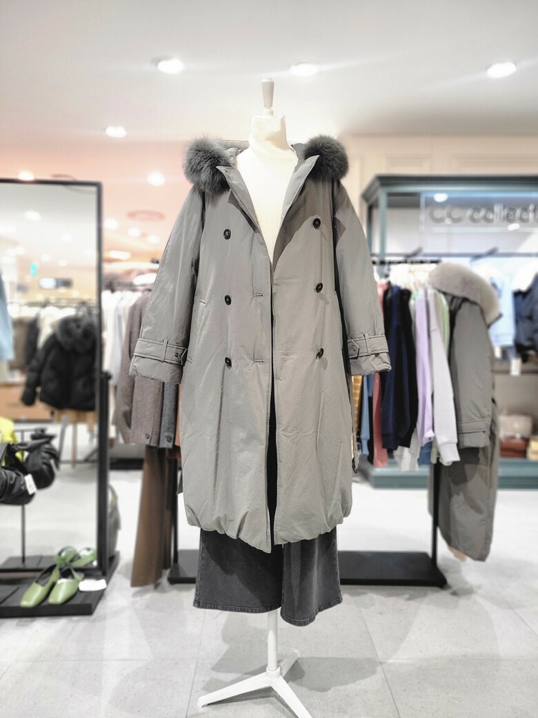 씨씨콜렉트 폭스퍼 후드 더블버튼 다운 점퍼 E234PSG197