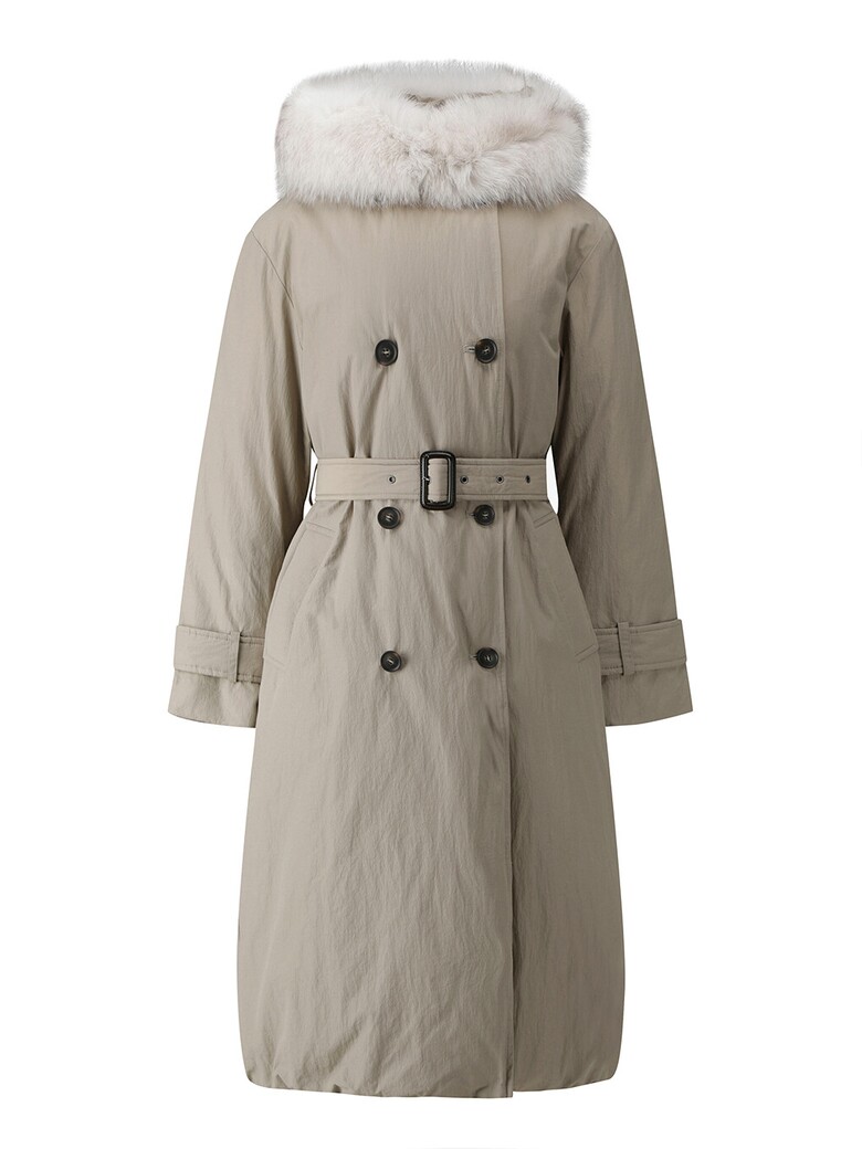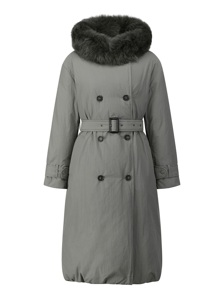 폭스퍼 후드 더블버튼 다운 점퍼